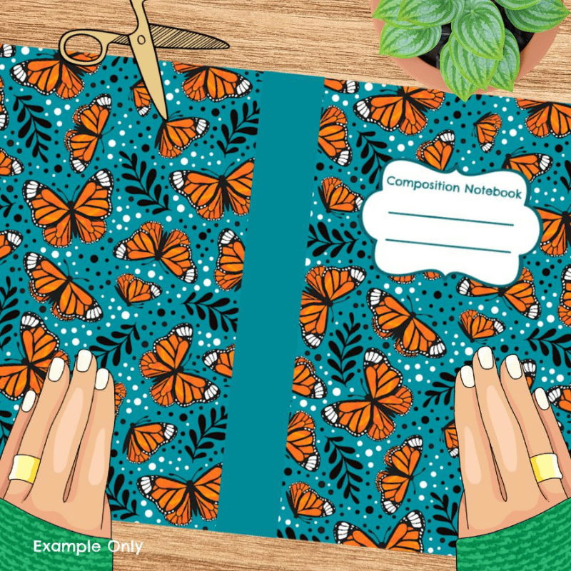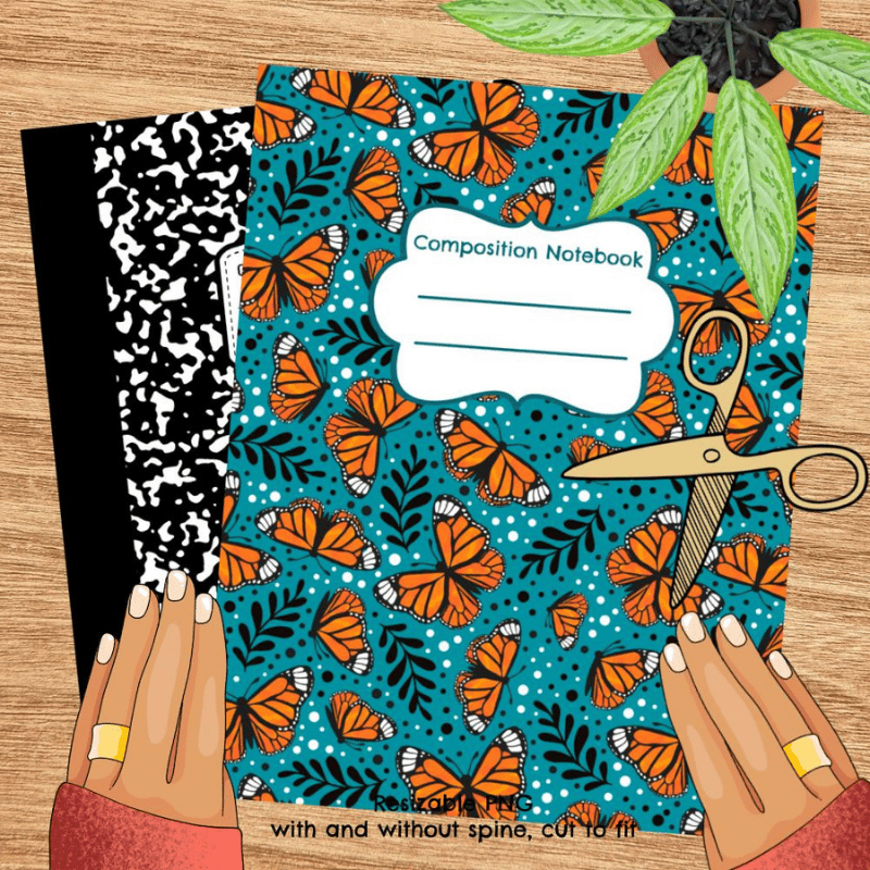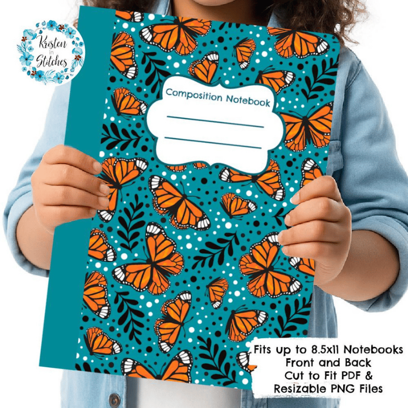 Composition Notebook Cover, Printable Resizable PNG, PDF, Monarch Butterfly Butterflies Turquoise
