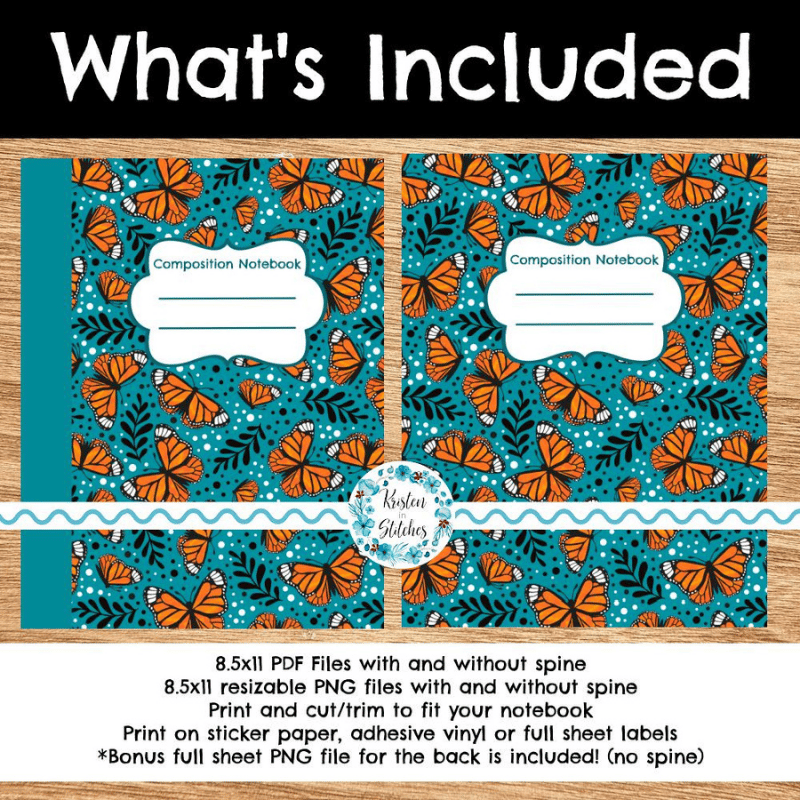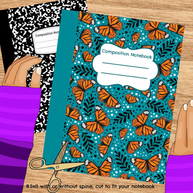 No more boring black and white composition books! This printable cover will make your notebook stand out! Size to fit any notebook up to 8.5x11- just print, cut and stick. Composition book measurements differ from brand to brand- you don't have to worry about sizing when you can cut it to fit perfectly.