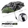 This umbrella design features the striking side profile of a Black man, intricately adorned with an array of geometric patterns and tribal motifs. The monochromatic black and white design contrasts sharply against a muted green background, emphasizing the detailed textures and shapes that make up his face and hair. The design combines elements of traditional African art with a modern, abstract twist, creating a powerful visual statement. This umbrella is a celebration of cultural heritage and contemporary artistry, perfect for those who appreciate bold, unique designs.