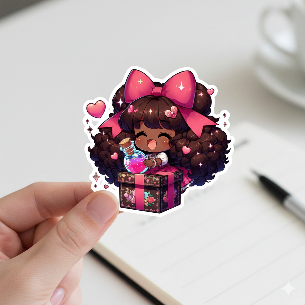 Adorable love potion sticker collection featuring cute chibi Black girls! ✨