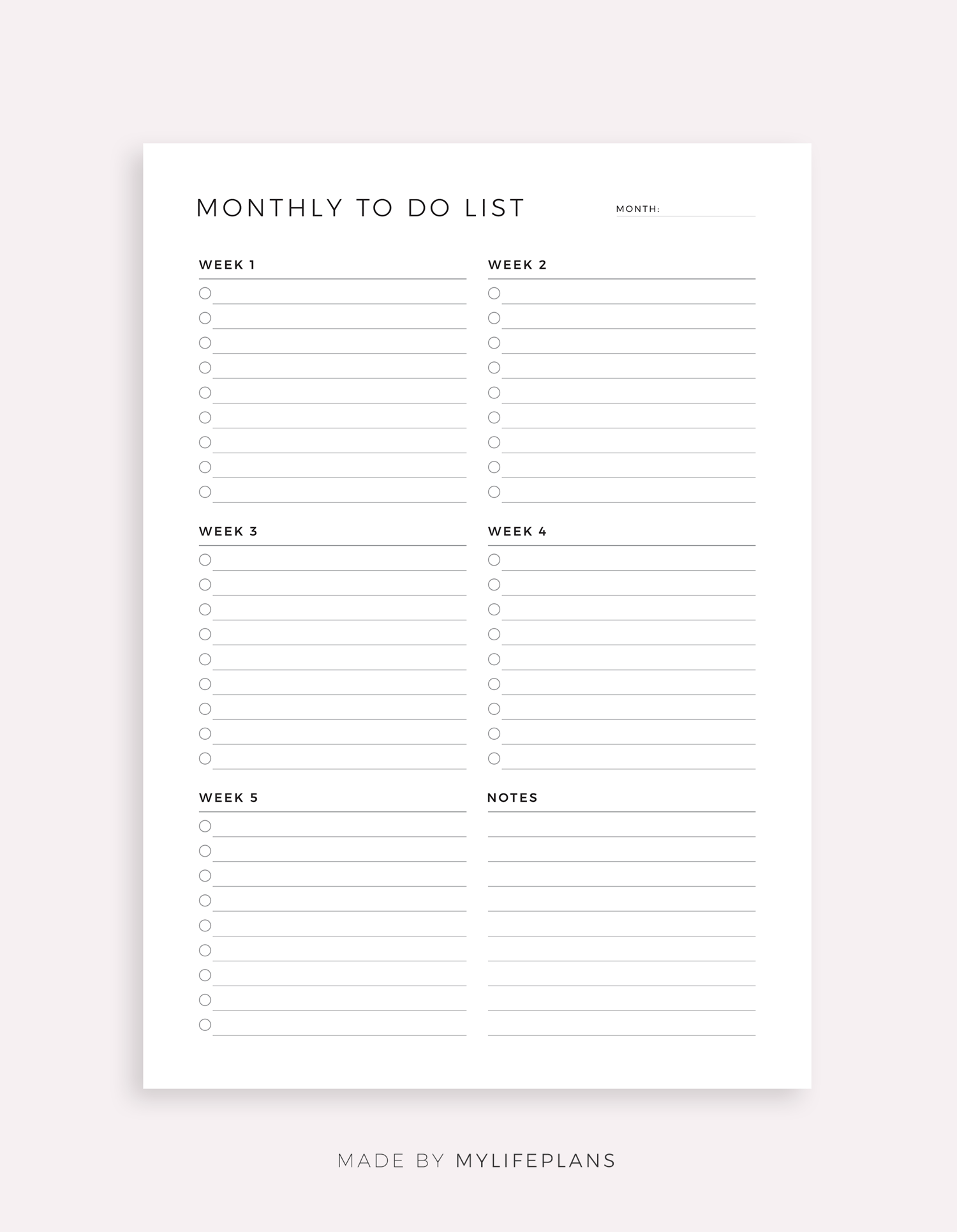 This is a printable monthly to do list planner — just download, print, and start using it right away.