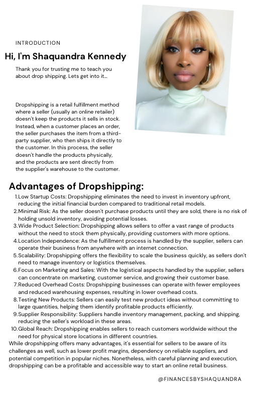 In this 16 page Ebook you will learn about dropshipping. The importance of marketing and choosing your ideal supplier. You’ll learn how to structure your business and much more.