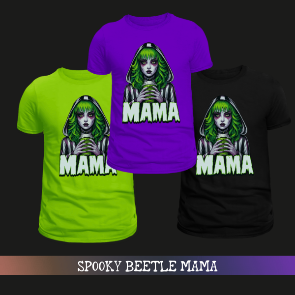 ✨ Get strange and unusual this season with our “Spooky Beetle Mama Tee.” Inspired by a creepy-cute gothic vibe, this shirt is perfect for Halloween fans, Beetlejuice lovers, and mamas who slay spooky style all year round.