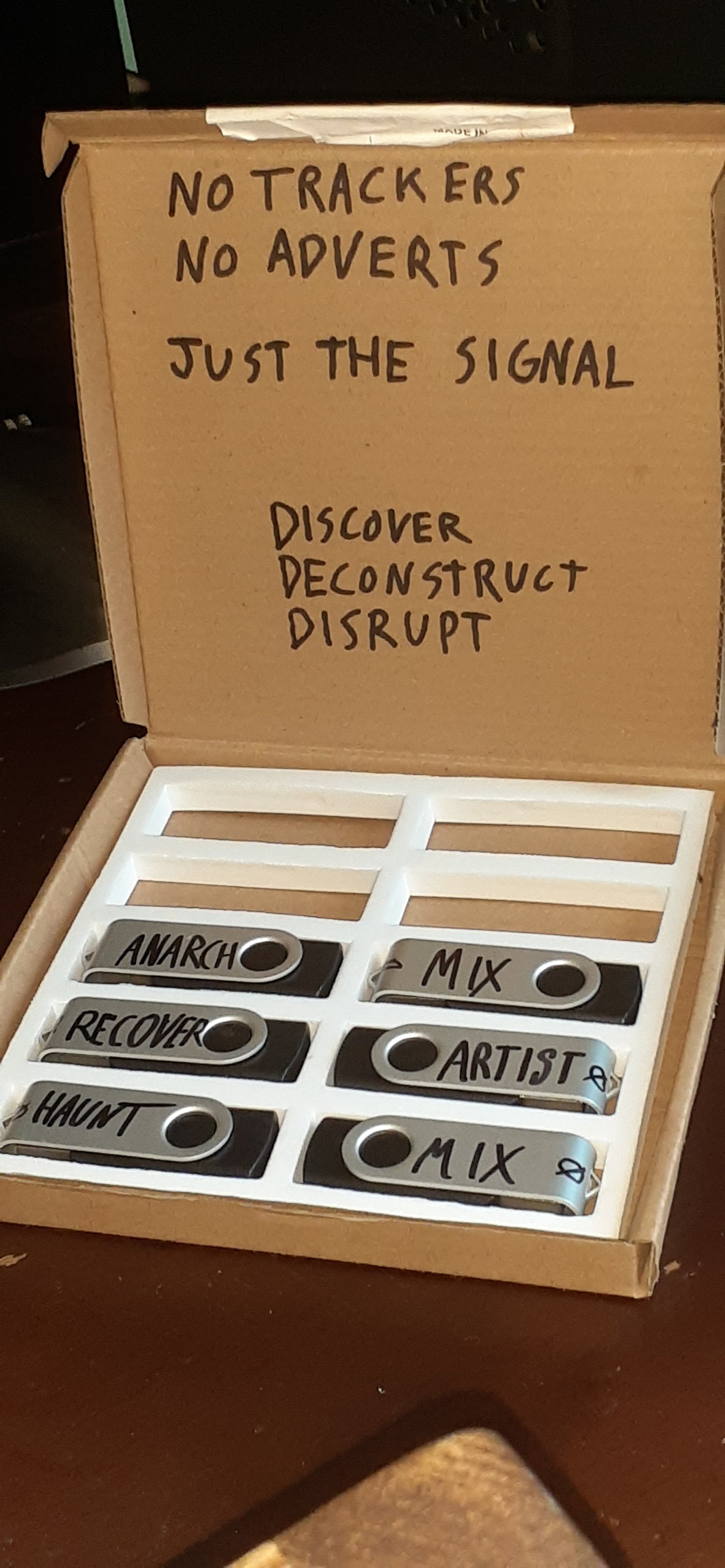 Bootable digital curiosity kits, hand-packed by a local cybersecurity student, offering a foundation in privacy, net art, games, and web hacker lore. Every USB is a handcrafted, unique artifact packed with the likes of: