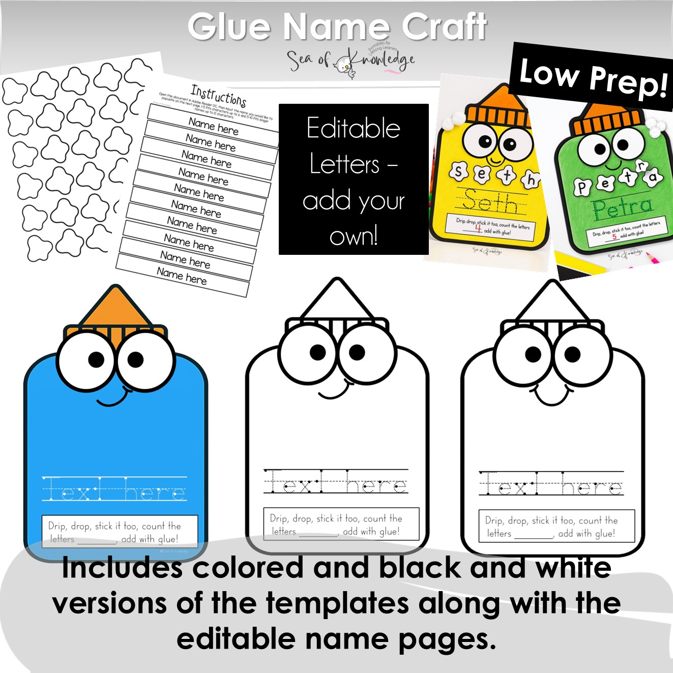 Glue Bottle Back to School Name Craft | Editable Name Activity