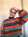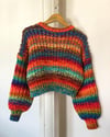 Say hello to your perfect little cropped jumper in squishy fisherman's rib stitch. Designed to be knitted using up leftover yarn ends (or any kind of DK yarn you like!). Contains all the detailed instructions you need on how to achieve my signature crazy marbled colour effect. This is an extra chunky, cosy knit on 7mm needles. This pattern is straightforward and would suit advanced knitters as well as beginners who have a good handle on the basics.