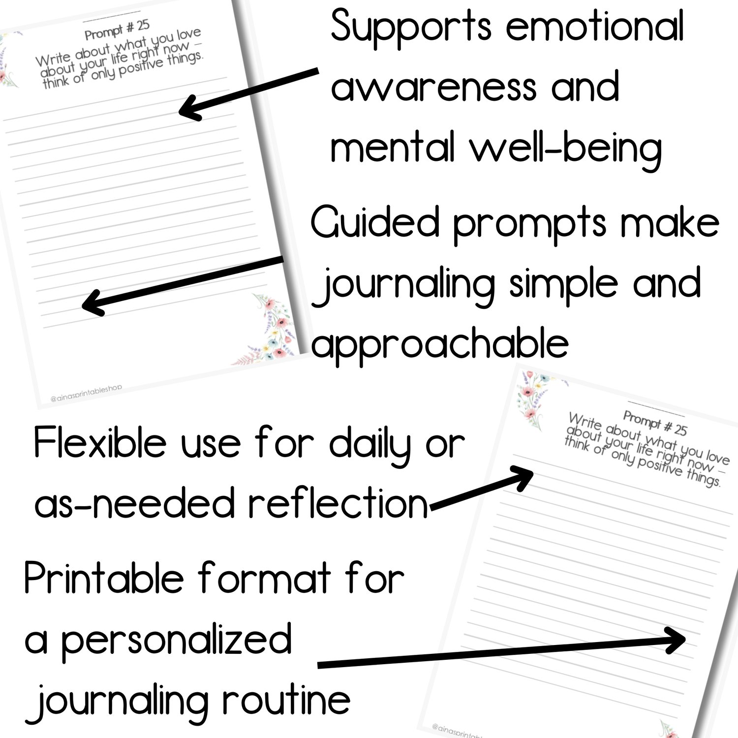 ❤️Supports emotional well-being: The prompts guide you through understanding emotions, identifying patterns, and reflecting on growth, helping you feel more grounded and aware.