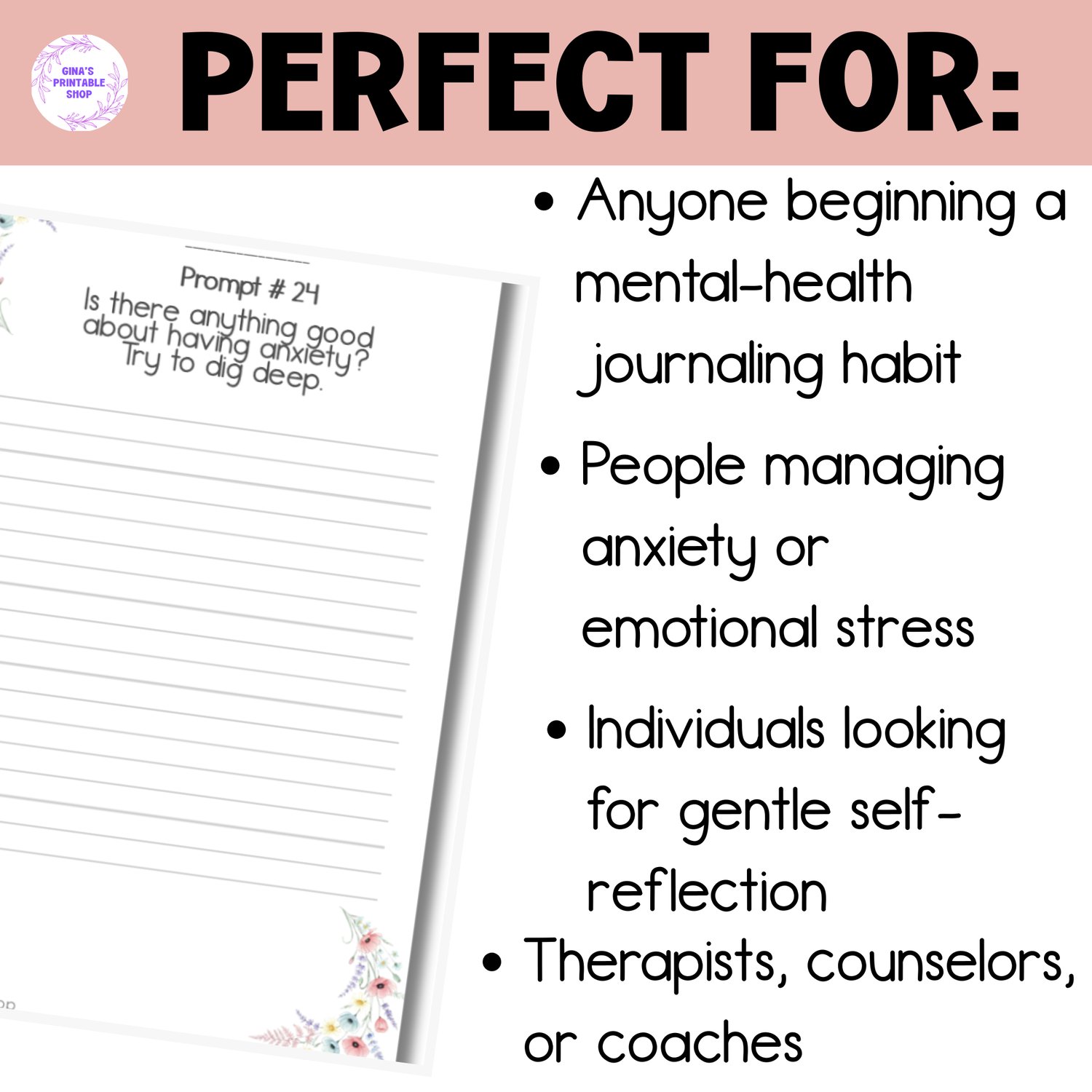 ➡️Anyone beginning a mental-health journaling habit: Perfect for those wanting structure without feeling overwhelmed.