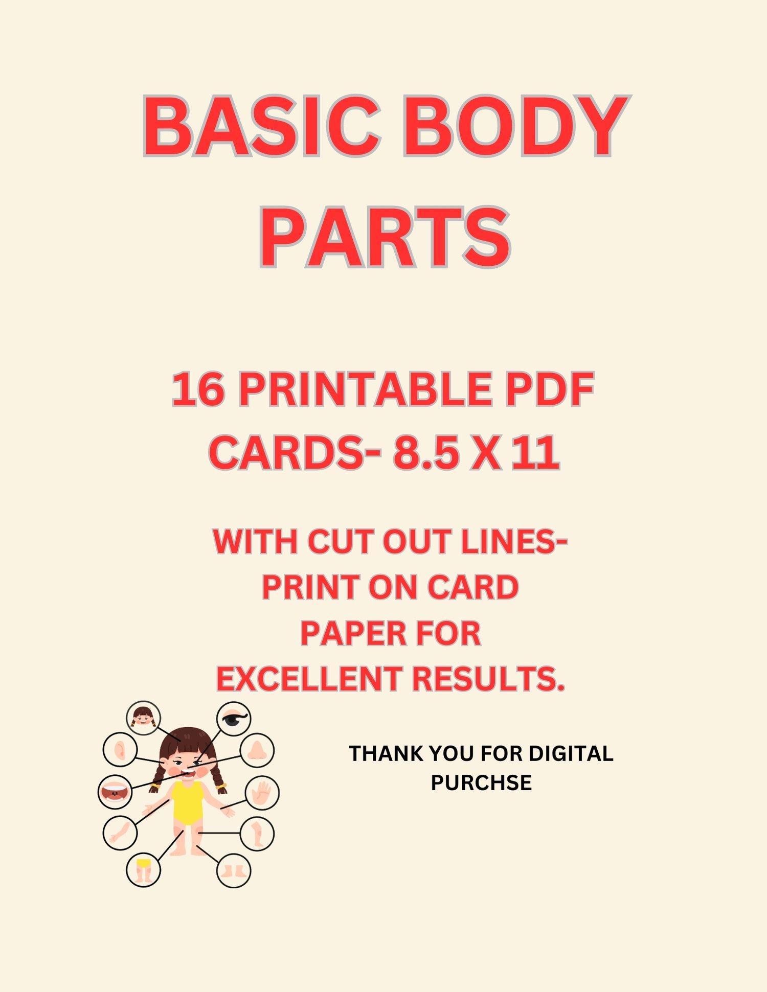 Flash Cards- Basic Body Parts- (Age1-5) Printable