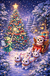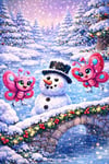 Snowflakes drift softly over the meadow as the Flutterbys prepare for the most special night of the year. Clouds are wrapped in shimmering tinsel, holly wreaths sway from Mr Owl’s oak tree, and the frozen stream becomes a playground of giggles and skates.