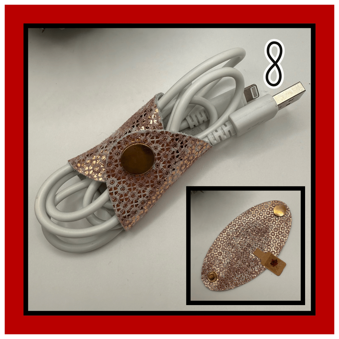 With hand-hammered snaps and double ½” slits, Mack keeps your cords clean, coiled, and always close by.
