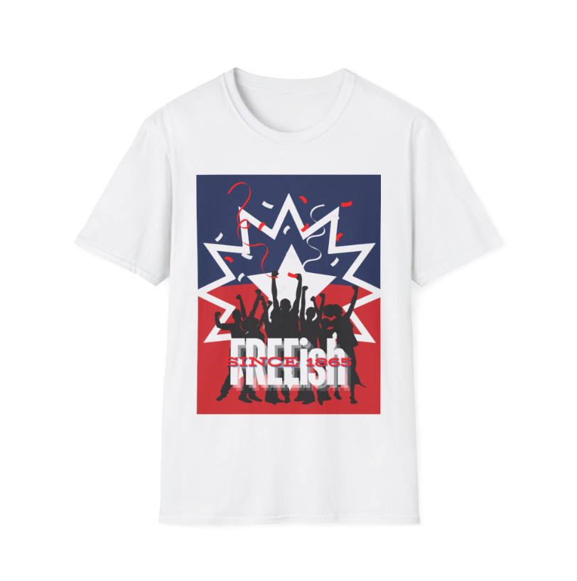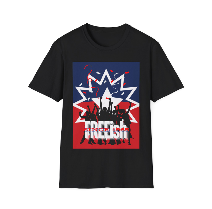 Commemorate Juneteenth with our exclusive Freeish Tees! These t-shirts feature a bold design with a silhouette of a celebration against a backdrop of the Juneteenth flag, symbolizing the journey of freedom since 1865. Available in gray, white, and black, these shirts are perfect for celebrating this historic day.
