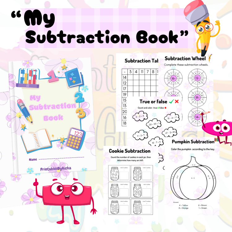 Make subtraction fun, engaging, and stress-free with My Subtraction Book – a printable math workbook filled with interactive subtraction worksheets for kids, perfect for kindergarten, first grade, and homeschool math learners!