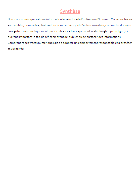 - Une synthÚse pour la trace écrite