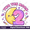 Two the Moon Birthday PNG – Cute Kawaii Moon & Number 2 Clipart for 2nd Birthday Party Decorations