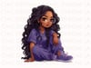 Animated African American Woman with Curly Hair Wearing Purple Scrubs, Cartoon Character PNG Animation with Stethoscope