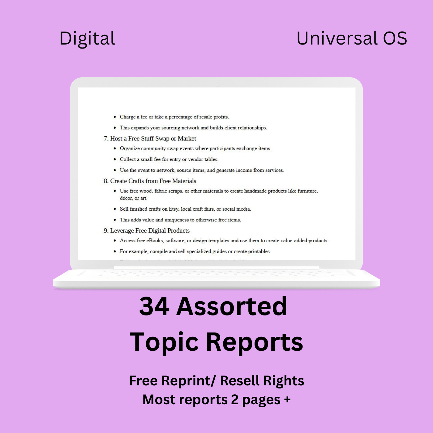 34 Assorted Topic Reports with Reprint and Resell Rights