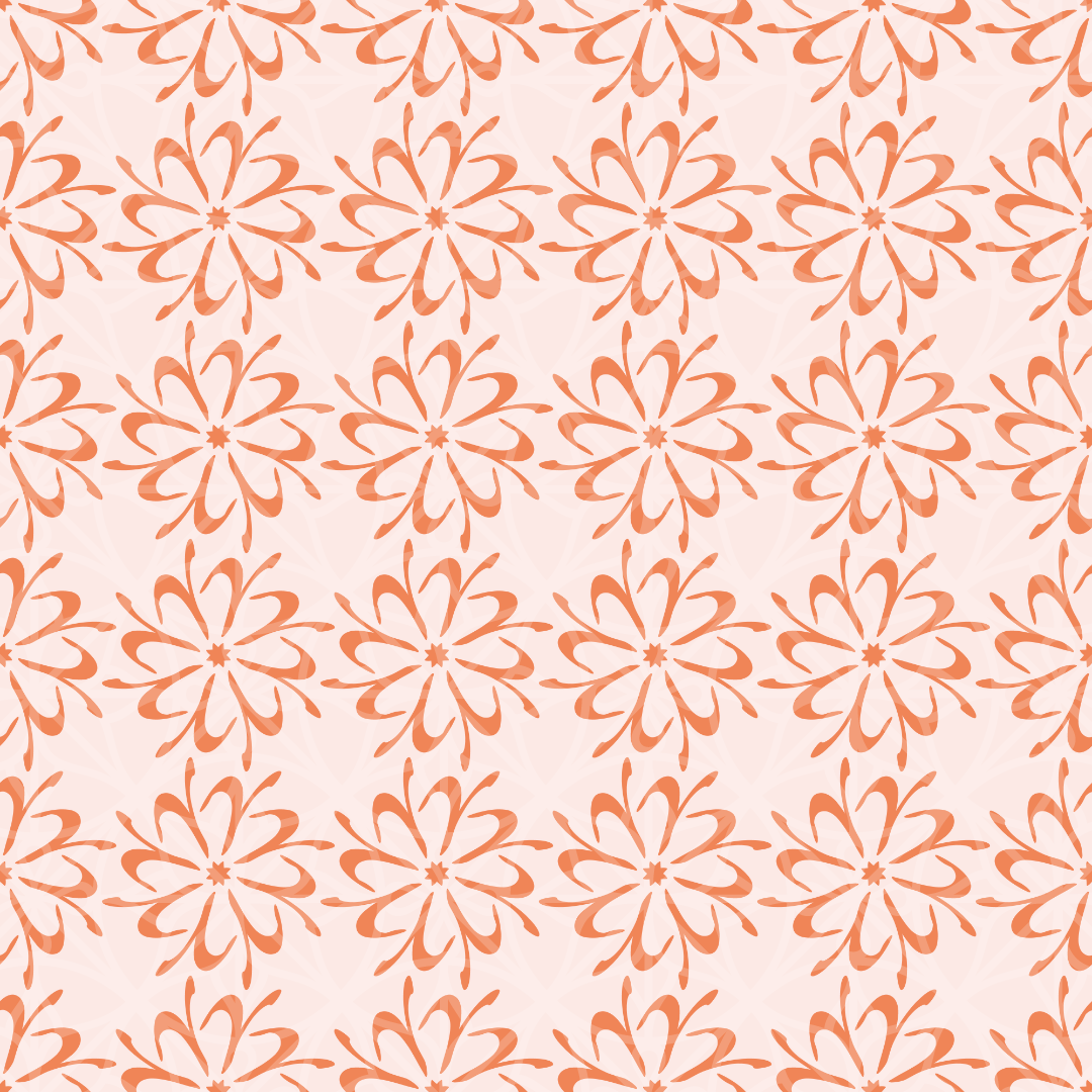 Orange floral seamless pattern generated with the rotation of a script small letter I. Abstract and organic vector illustration background.