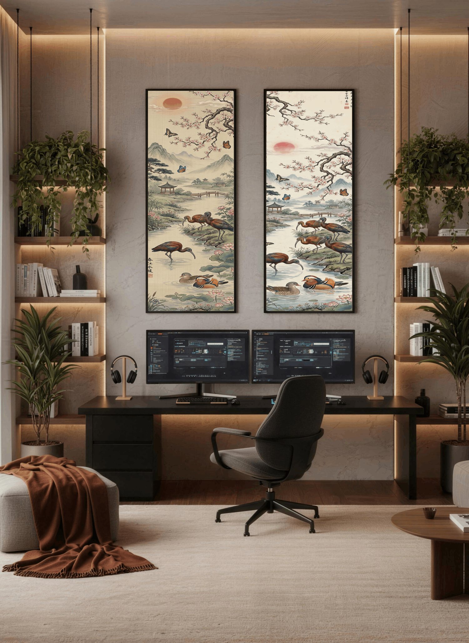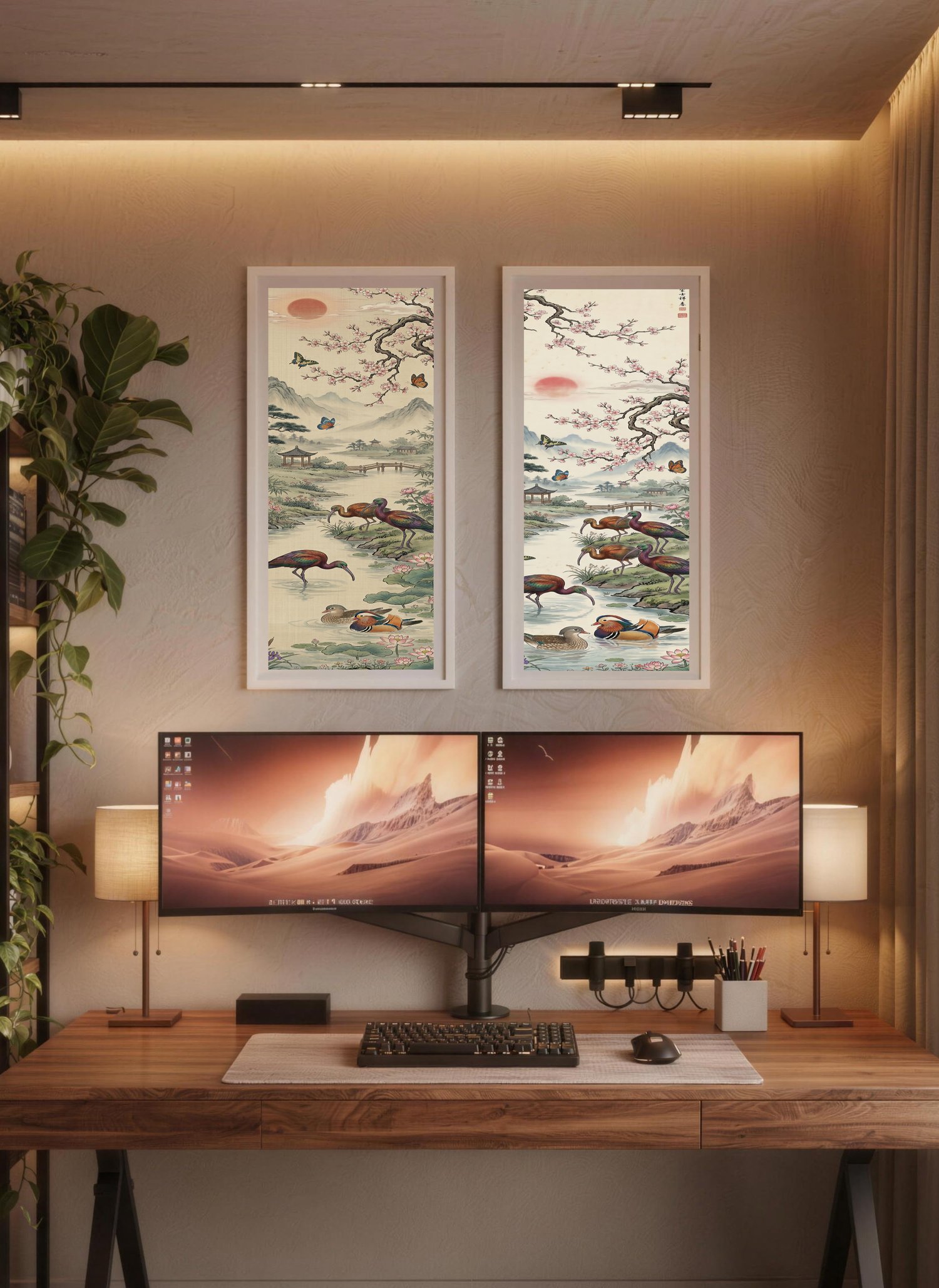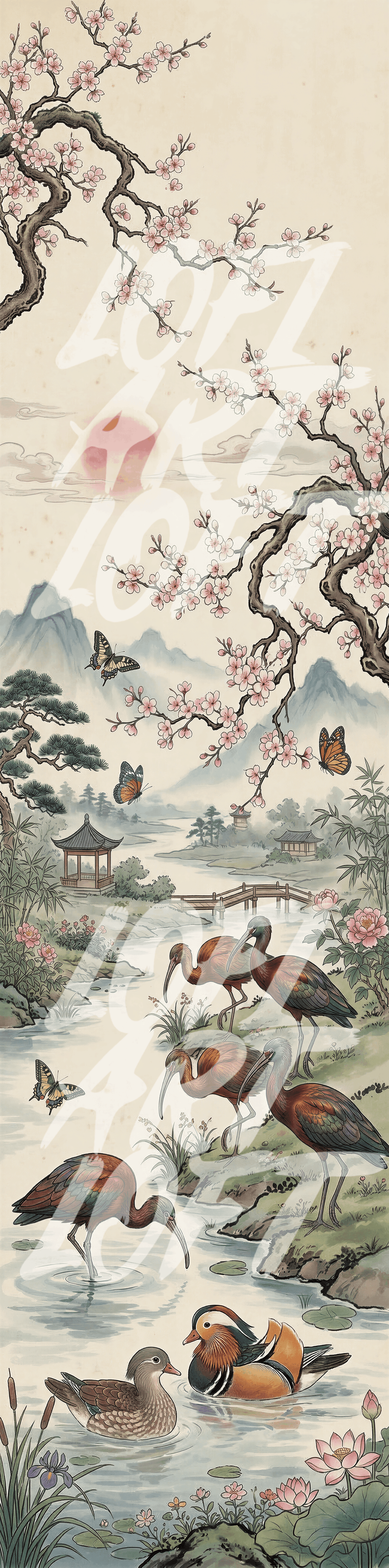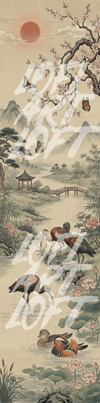 Mandarin Ducks & Maglan Serenity - SIGNATURE LIMITED COLLECTION - Vertical Japanese Vintage Ink Series - UHQ Digital Lofi Anime Art Print | #48