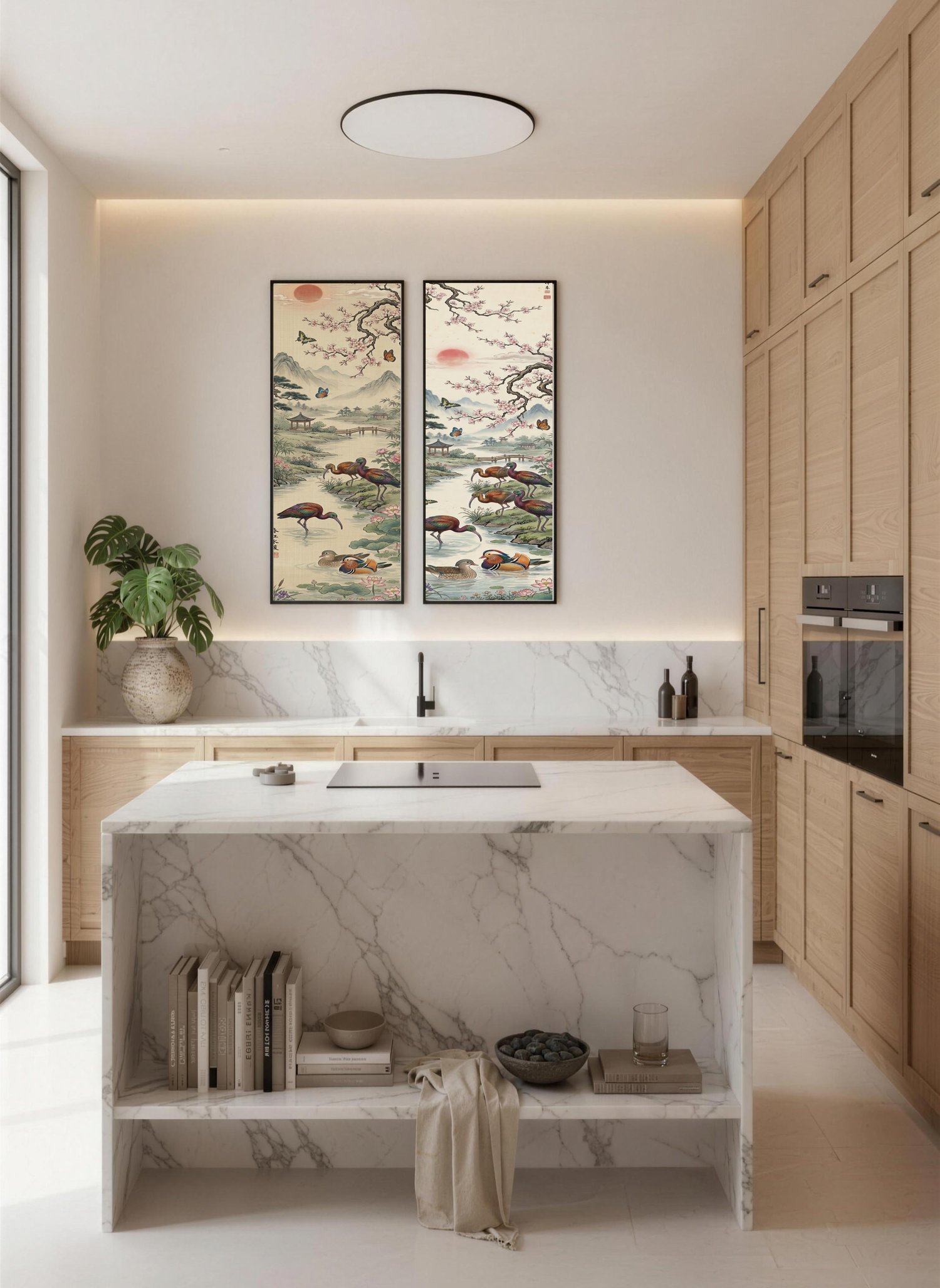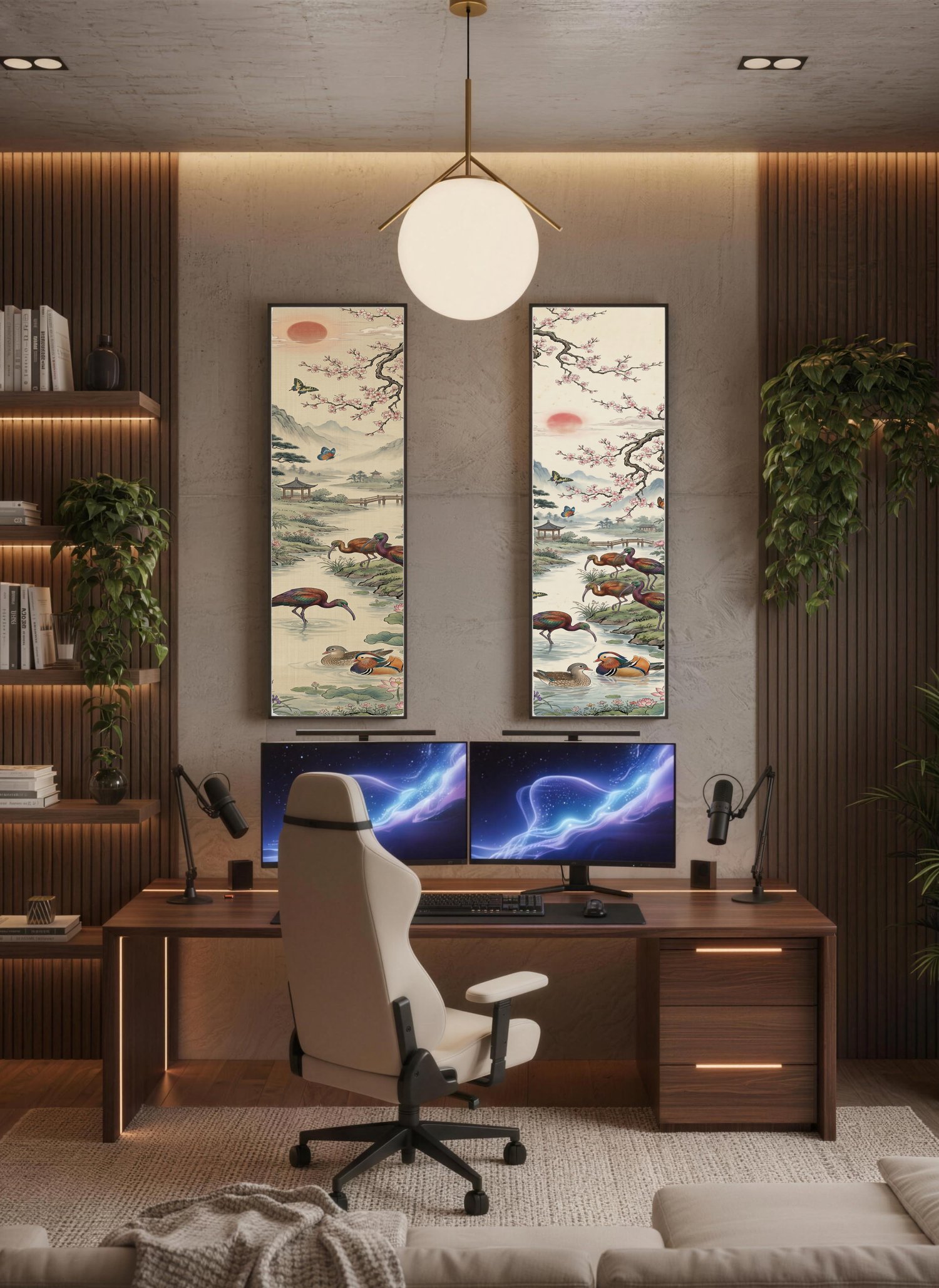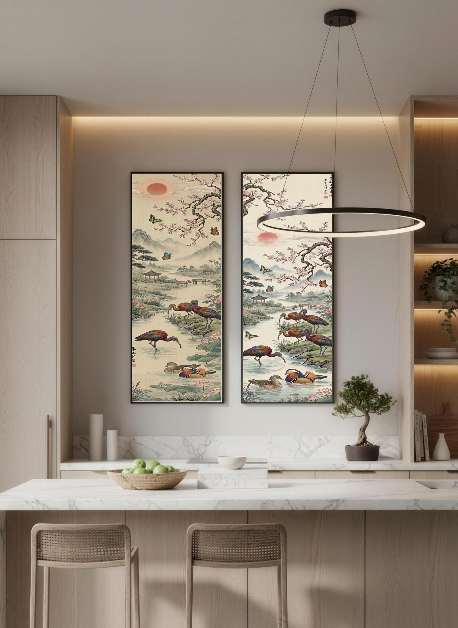 Mandarin Ducks & Maglan Serenity - SIGNATURE LIMITED COLLECTION - Vertical Japanese Vintage Ink Series - UHQ Digital Lofi Anime Art Print | #48
