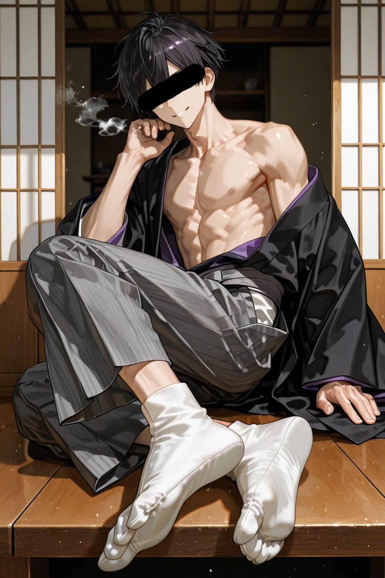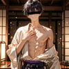 日本の正月をテーマに、着物を着用している男性を、キャラクターごとにお任せ作成しました。男らしいキャラクターの魅力を思い切って表現しました。