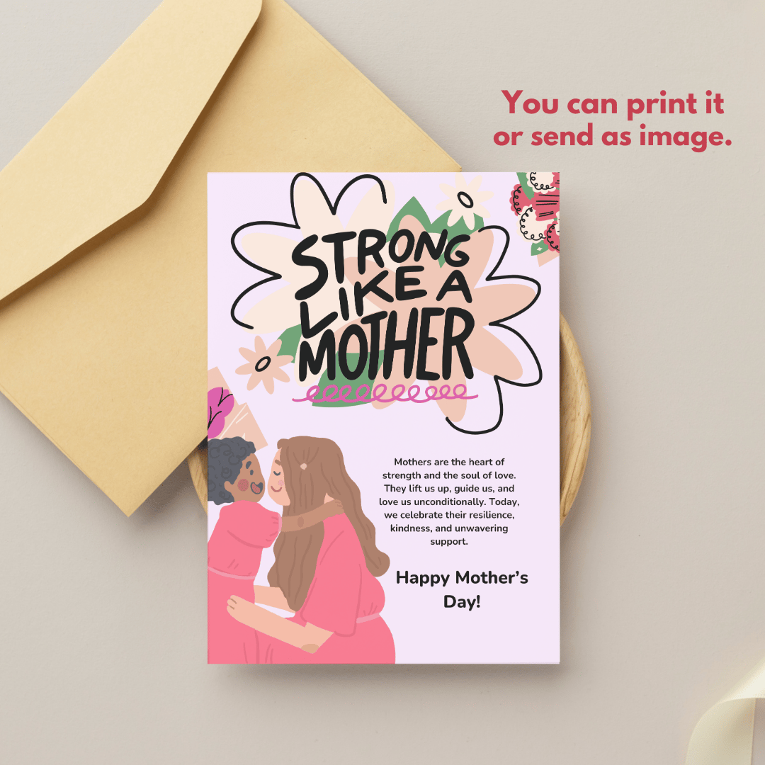 Cute Mother and Daughter Strong Like a Mother Mother's Day Card Celebration Canva Template Design