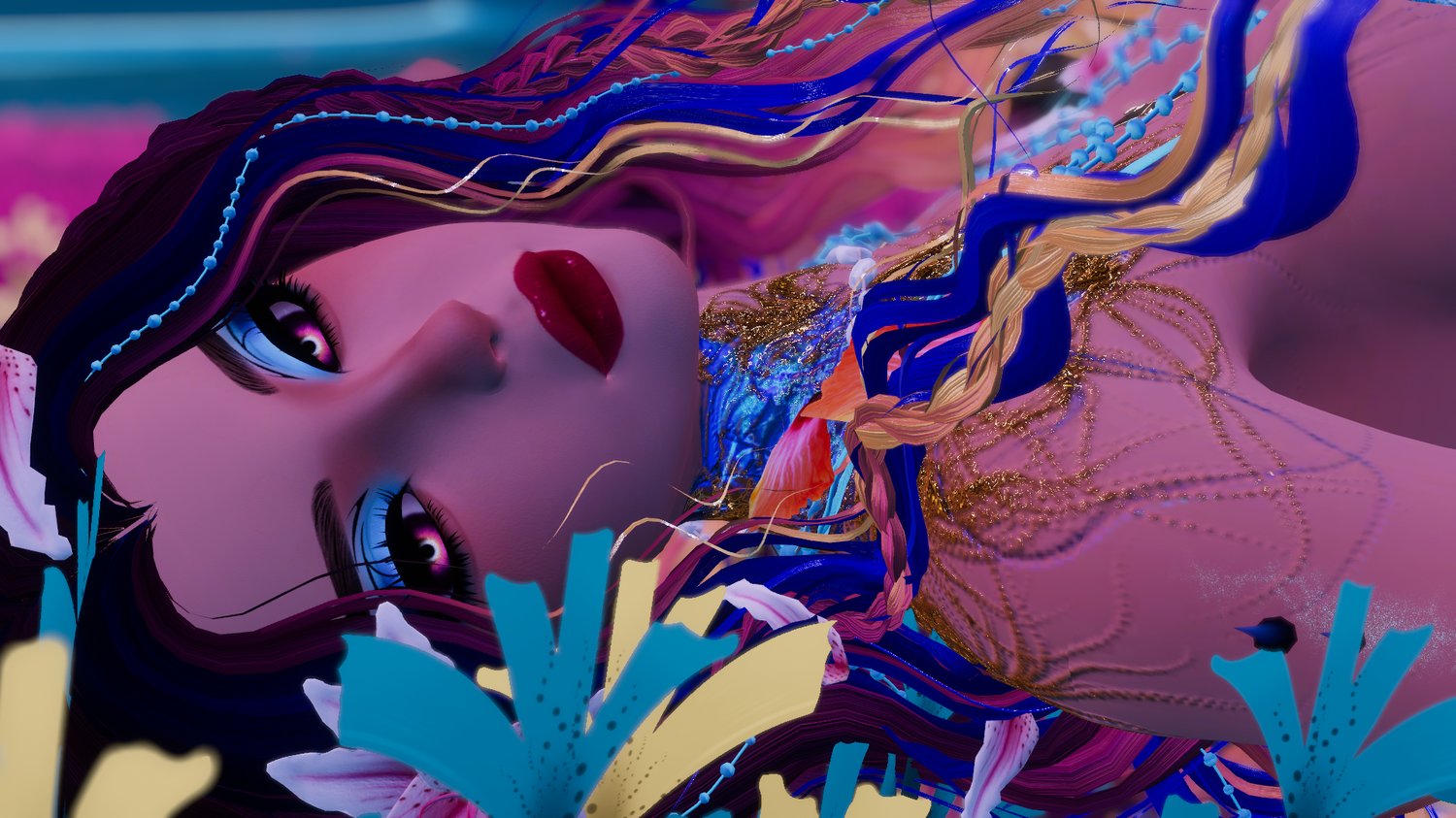 Hair Color Main: Sunset, Black, White, Aqua, Blue