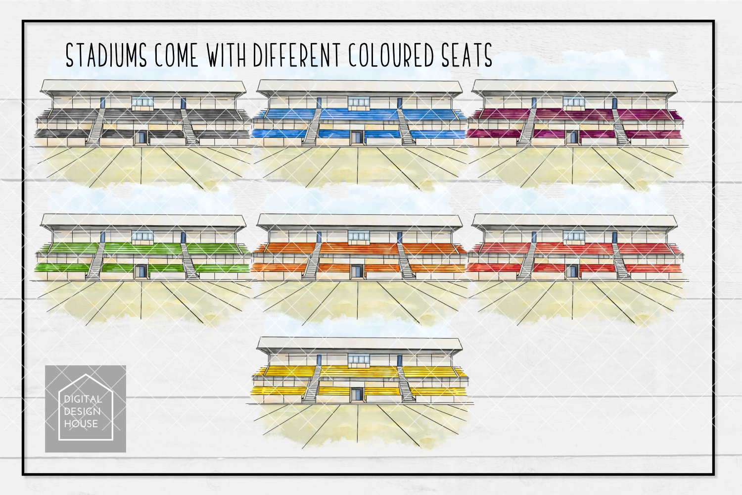 ✔ Set of Football Stadium Background PNGs with different coloured seats