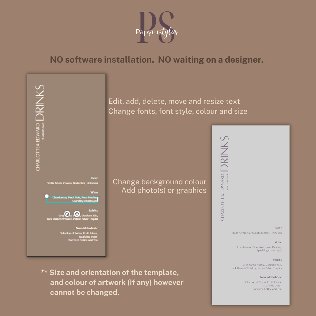 EDWARD Modern Wedding Drinks List Template | BLUSH