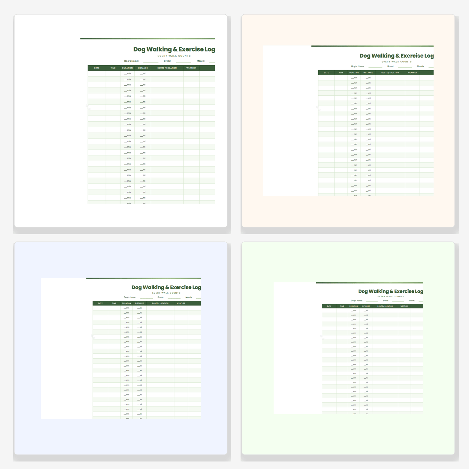 Dog Walking & Exercise Log | Pet Activity Tracker | Daily Walk Schedule Printable