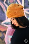 The easy-to-wear gentle slouch shape is written in 4 sizes, with both text and charted instructions.