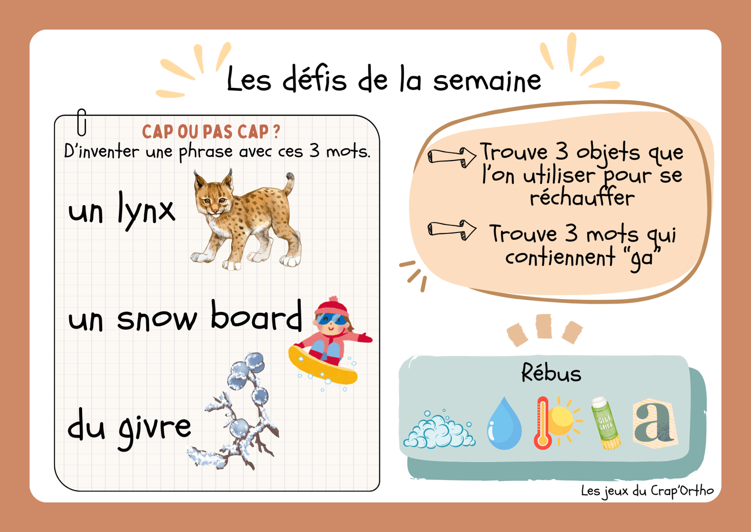 Les défis de la semaine - hiver