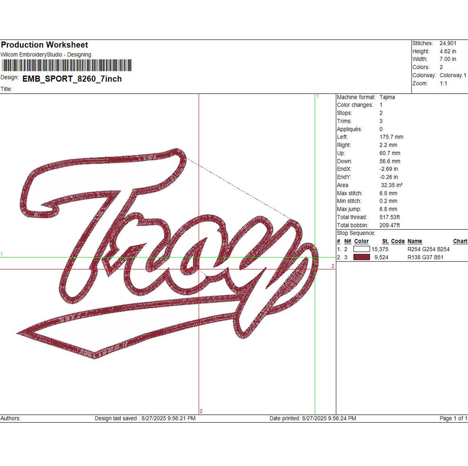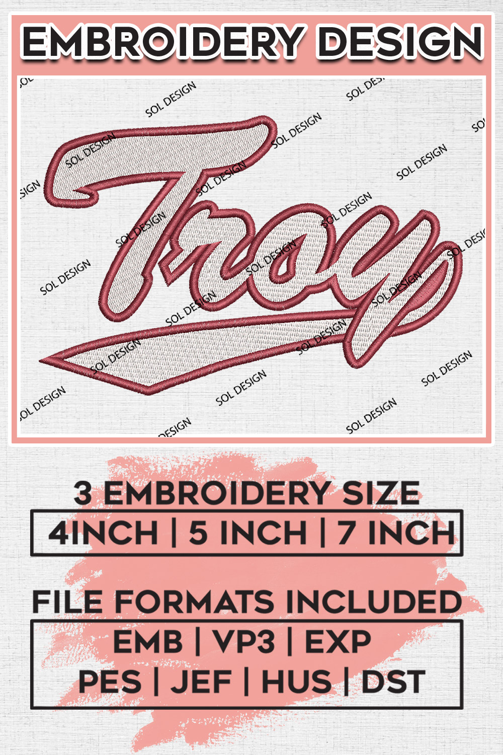 NCAA Troy College Football Team Writing Logo Embroidery Designs, Ncaa Embroidery Files, Troy Trojans NCAA Team Logo Embroidery, Game Day Machine Embroidery Design, Digital Download