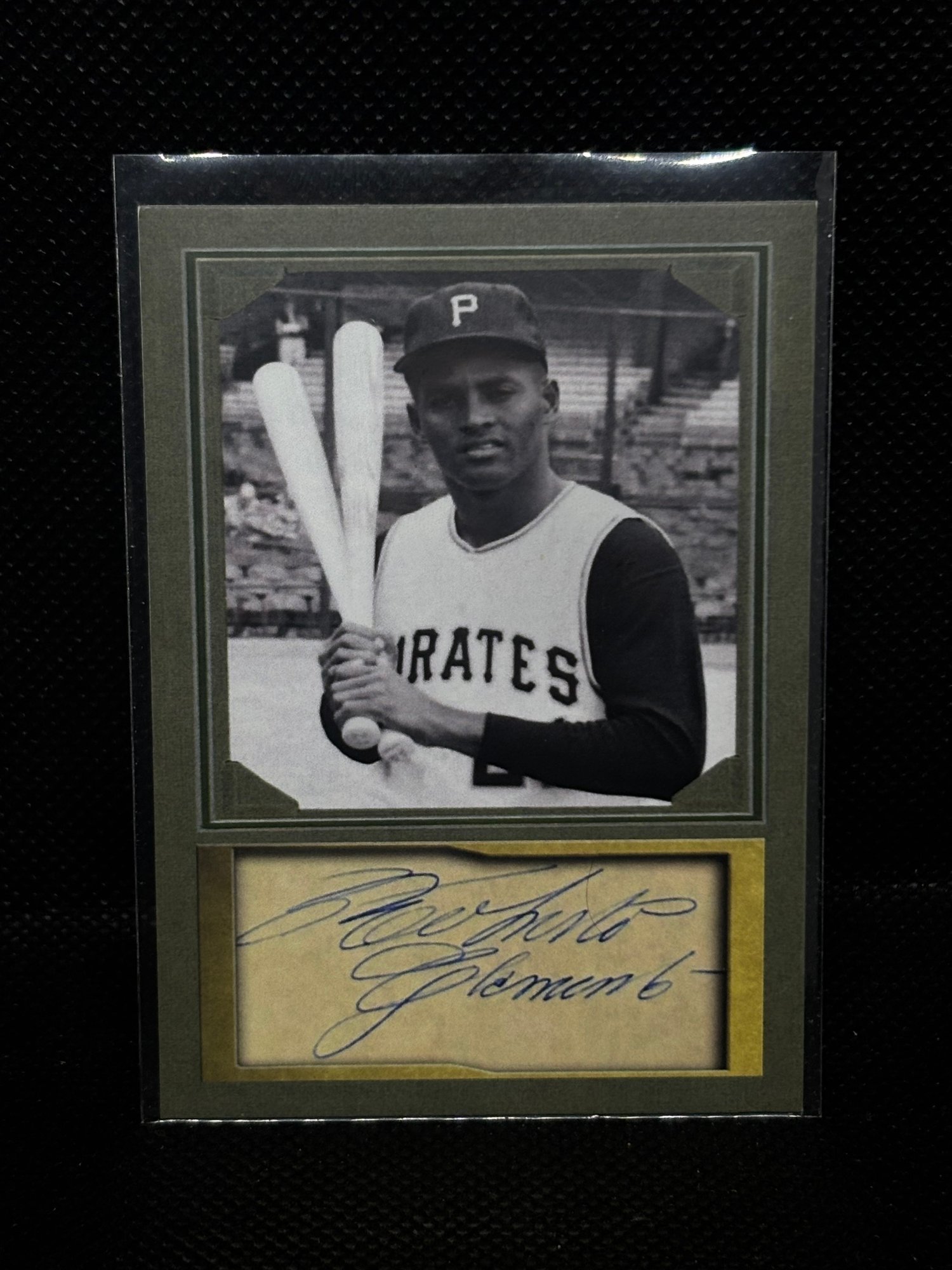 A breathtaking tribute to the legendary Roberto Clemente, this facsimile autograph edition blends artistry, heritage, and baseball history. The front showcases a black-and-white portrait of Clemente holding two bats, framed in a museum-style border, while the lower panel features his reproduced autograph — a nod to his grace both on and off the field.