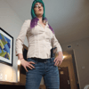 MORGAN MCLOVIN has a shootout wither her clone, they are both wearing white shirts and tight blue jeans