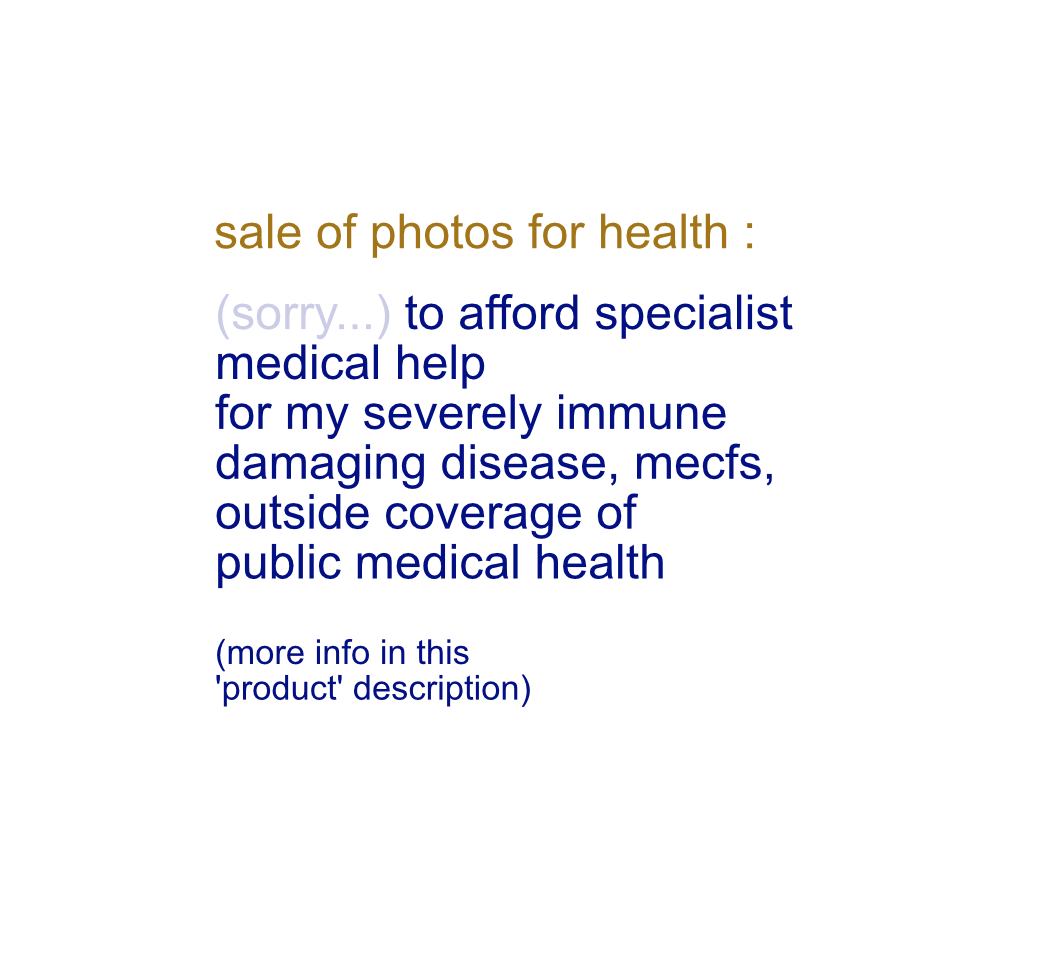 photo sales = raising money for specialist medical help for a severe immune damaging disease, mecfs
