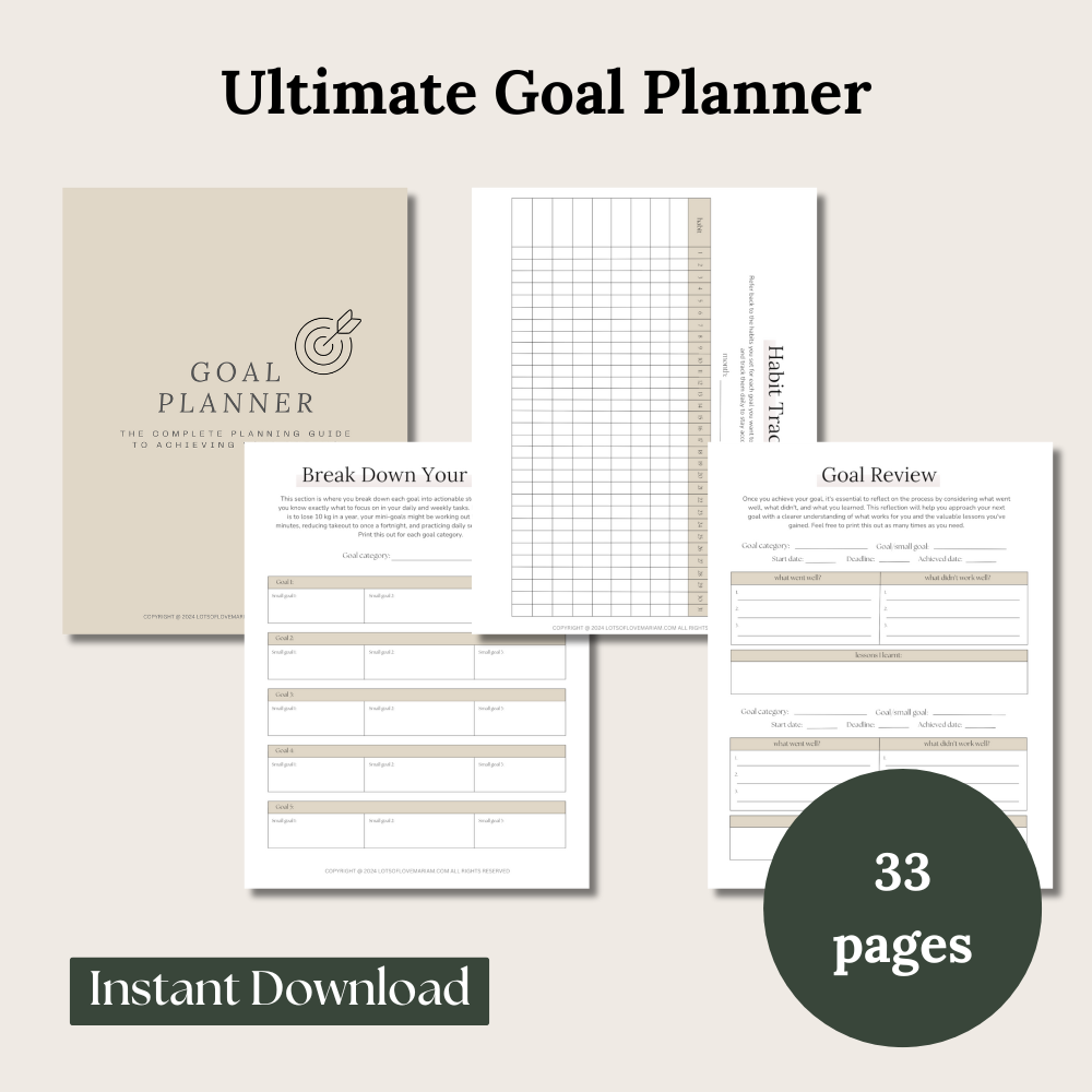 Over 30 Pages of Goal-Setting Magic! Take charge of the next 12 months, set goals that matter, and create the life you’ve always wanted. Get your digital goal planner now and start making your dreams a reality!