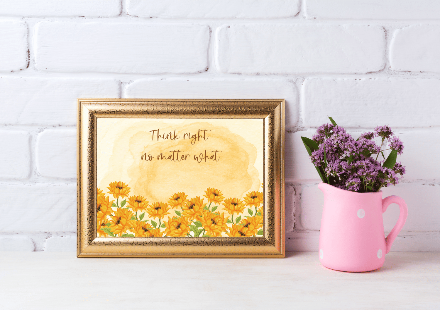 Beautiful Sunflower Field with Quote about Life "Think right no matter what"–Lovely Home Decoration ideas–Office Art Prints–Gift Ideas- Motivational Quotes-Qoute of the day