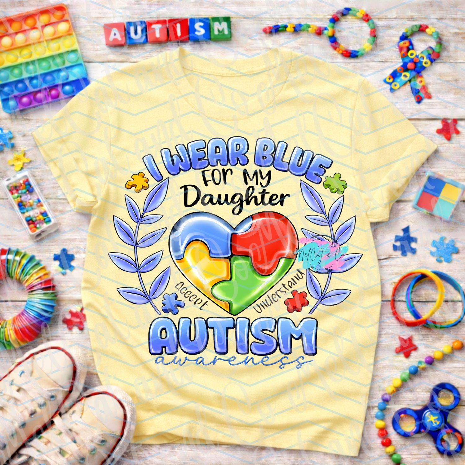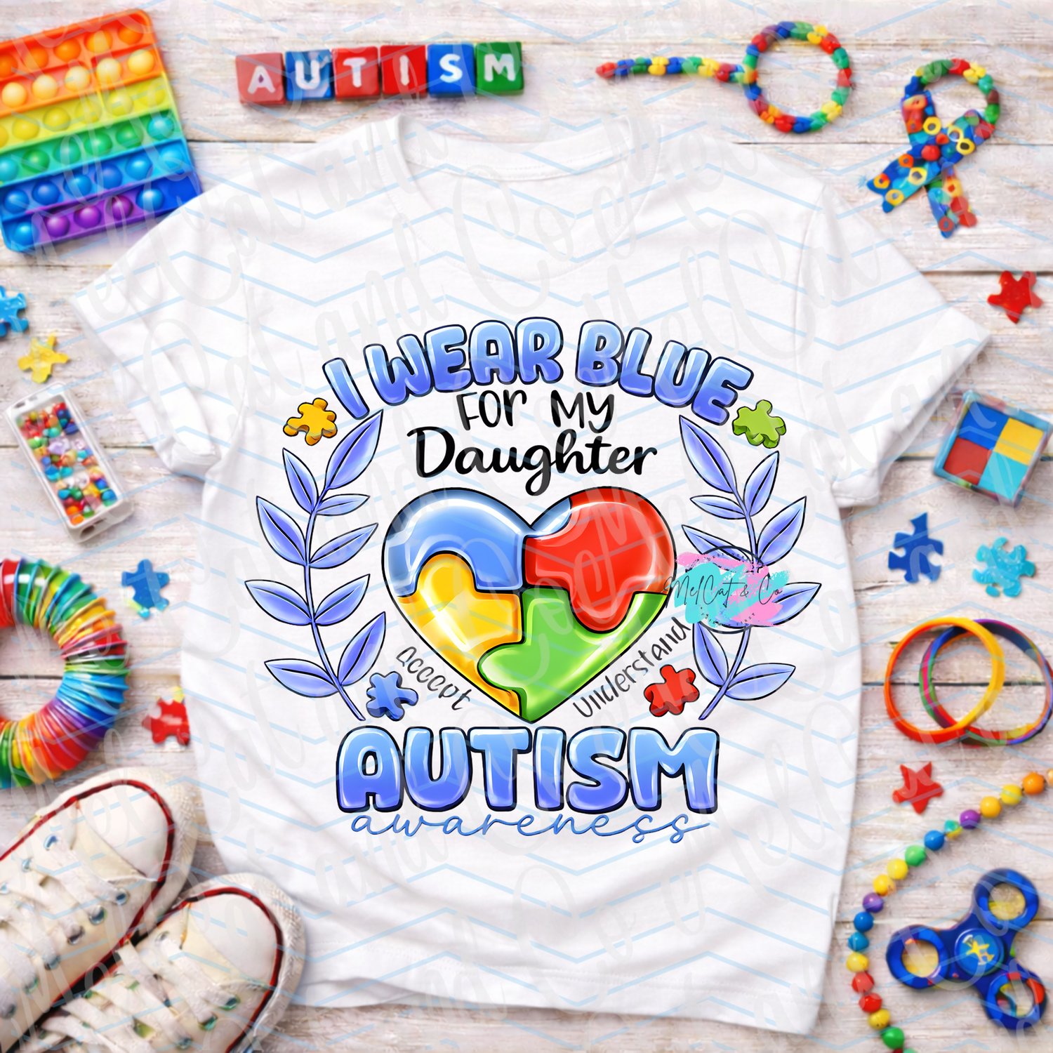 The meaningful phrase “Accept. Understand.” surrounding the heart adds a powerful message of inclusion and advocacy.