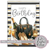 a4 black gold shoes bag card front