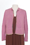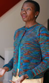 Attention to detail in both design and finishing create a sophisticated ease and make this a perfect fingering weight cardigan. Doubled hems of contrasting handpaint or color add weight and style, complimented by a wide back stripe. Learn a new way of working front bands and buttonholes that fit this piece perfectly.