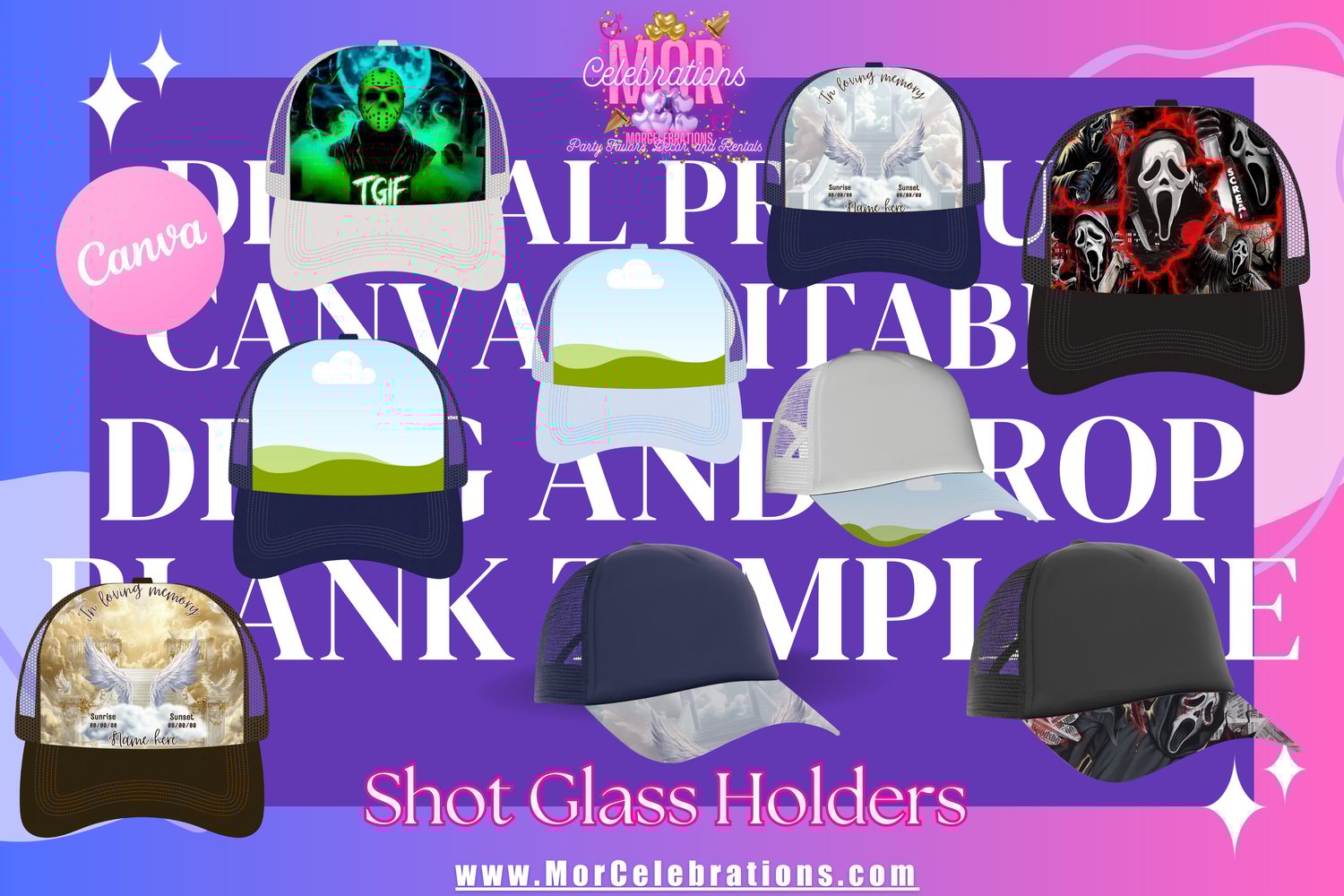 Elevate your party style with our exclusive Trucker Hat, designed to make every moment unforgettable at MorCelebrations. This Trucker Hat digital product features a Brim Canva Template, offering a convenient Drag and Drop interface so you can customize your hat to your liking.