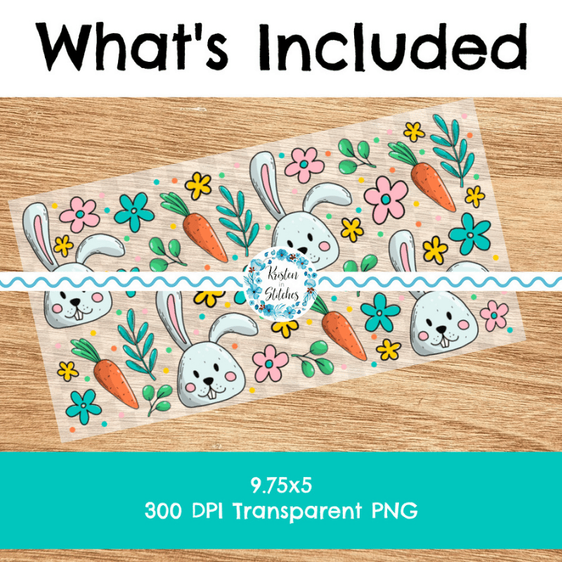Features sweet bunnies, carrots and colorful flowers.