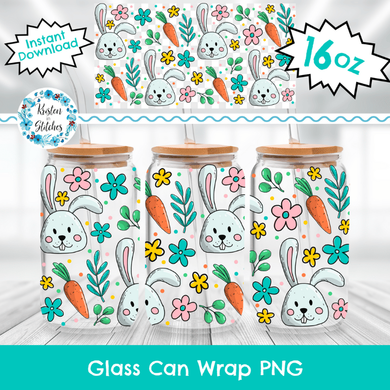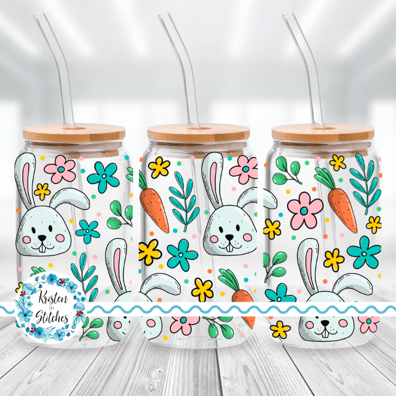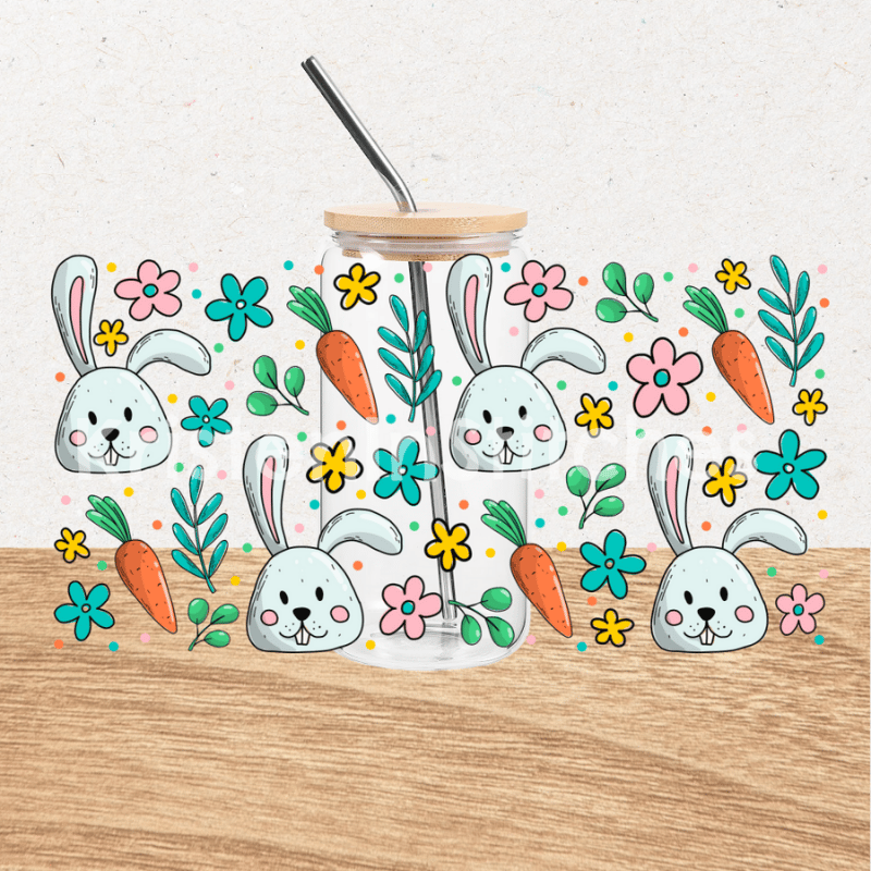 Spring Bunny Glass Can Wrap Transparent PNG, Easter Bunnies Flowers