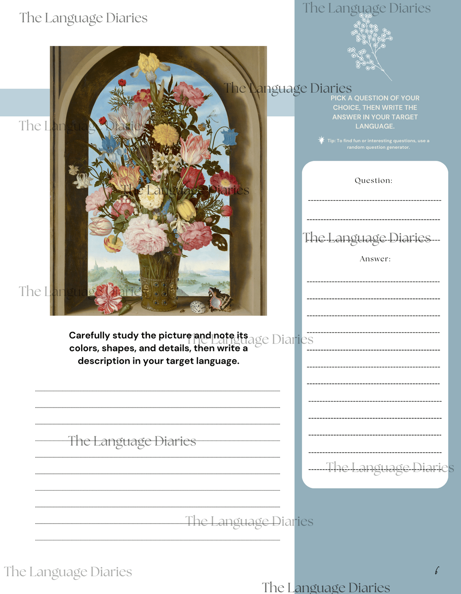 Looking to enhance your language skills? This language learning workbook is the perfect tool for you, regardless of your proficiency level or Target Language. This workbook is designed to cater to your needs and help you advance your language output skills.