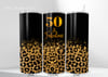 Gold Glitter Leopard Print 50 & Fabulous Black and Gold 20 oz Tumbler Wrap Instant Download, 50th Birthday, Birthday Tumbler Wraps, Skinny Tumbler Wraps