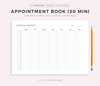 Appointment Book 30 Minute Intervals, Landscape, Printable Template, A4/Letter Size
