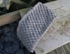Unstretched, after blocking are 61 cm/ 24” circumference x 16.5 cm/ 6.5” long.