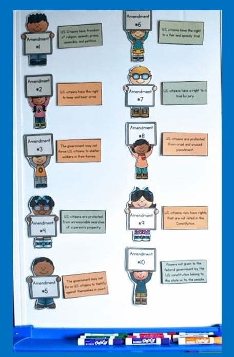 This listing is for the physical product. Students will enjoy learning the U.S. Constitution Bill of Rights with this matching activity. Using a pocket chart, magnets on a whiteboard, baskets, or just a desk, students will match the amendment number with its substance. This activity provides great hands-on memory practice. There is only one of these physical products available, so first come first serve. You can get the digital version of this product here.