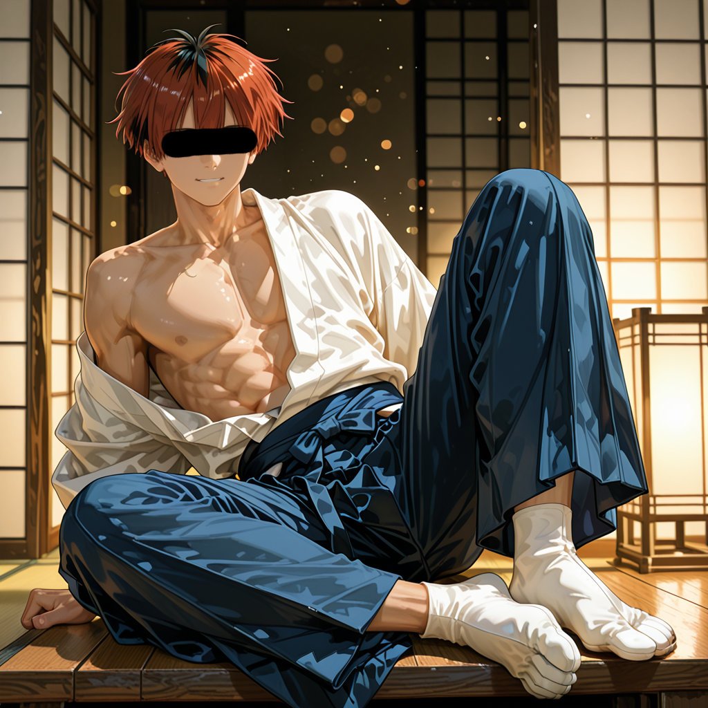 日本の正月をテーマに、着物を着用している男性を、キャラクターごとにお任せ作成しました。男らしいキャラクターの魅力を思い切って表現しました。